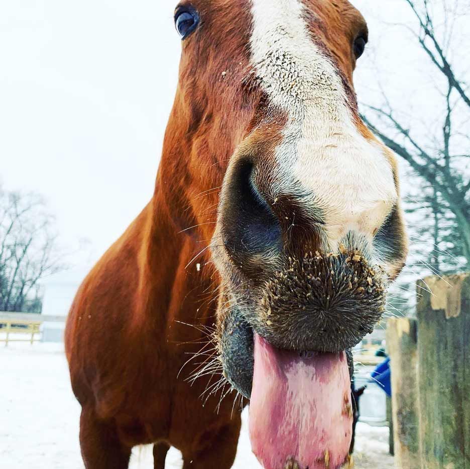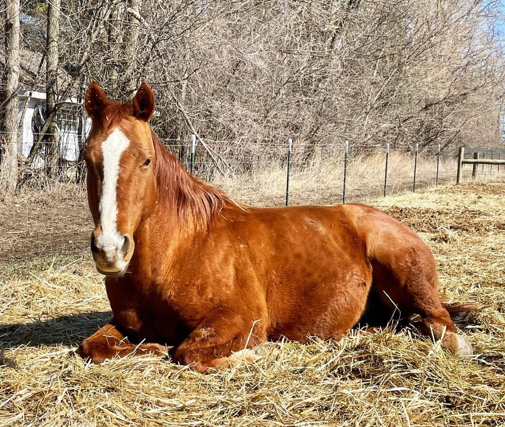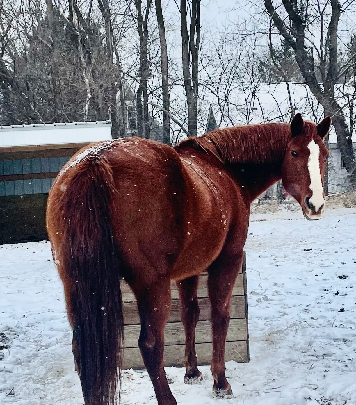 "Walk in Love" also known as Pretty Girl is a 24-year-old thoroughbred mare. She was rescued from the track as a four-year-old and has been living her best life here ever since. She's very sassy, but sweet and loves to give kisses and take peppermints from mouths.